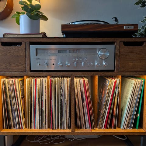 Akai AM-U11 är en stereo integrerad förstärkare med olika ingångar och justeringsmöjligheter för ljudnivå och balans. Den har en analog volymkontroll och en ljudnivåmätare på frontpanelen. Förstärkaren är utrustad med anslutningar för högtalare och flera ljudkällor på baksidan. Låter riktigt bra och spelar på med bra tryck för att vara 2x20 watt!