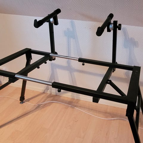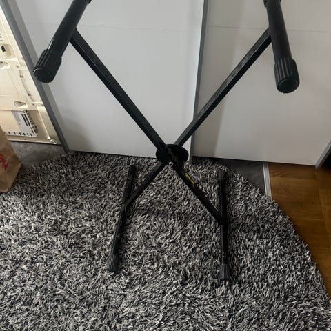 Säljer ett svart, hopfällbart stativ i X-modell som passar de flesta keyboards, digitalpianon och syntar. Det är lätt att justera i höjdled och tar minimalt med plats när det fälls ihop.