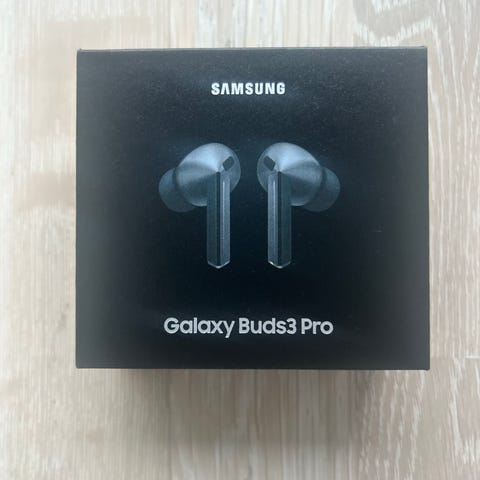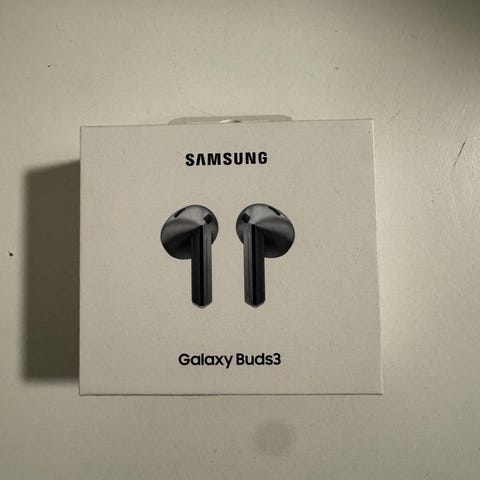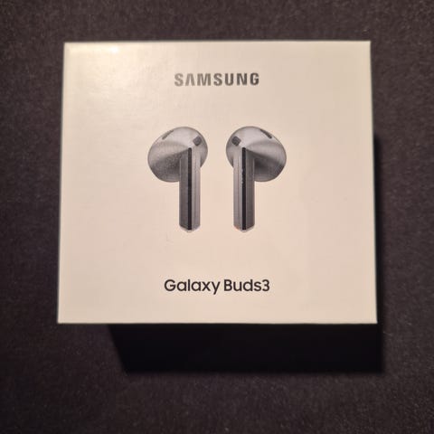 Samsung Galaxy Buds3 trådlösa hörlurar. Hörlurarna är designade för trådlös anslutning och levereras i originalförpackning.
