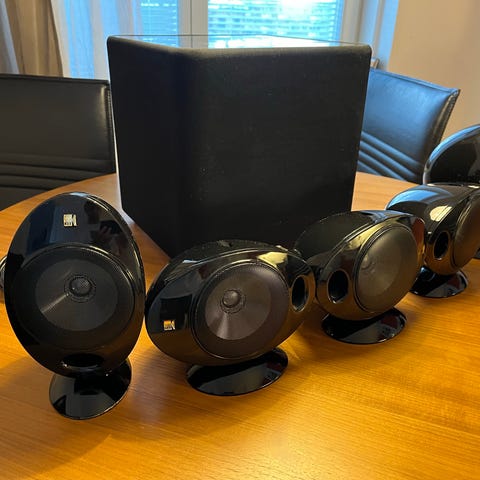 KEF surround system med de berömda äggen, subwoofer PSW 2010 med 5 högtalare. Den är inte använd på minst 10 år, men det var en riktig klassiker förr, prisnivå 8-10 tusen. Skickas ej.