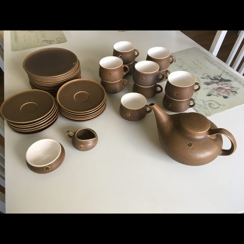 12 st kaffekoppar , 1 gräddkanna, 1 sockerskål.