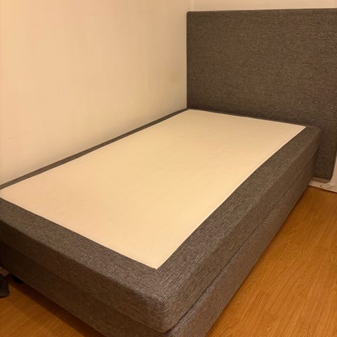 Sängstomme 120 cm i körsbärsträ. Bra skick men finns en mindre skada på ena gaveln (se bild) samt några mindre repor på ena långsidan. Sängen är köpt på svenska möbelmässan.