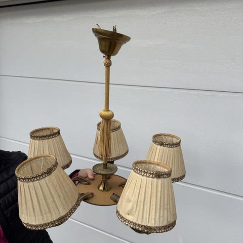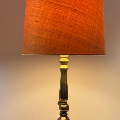 Taklampa från 60/70 talet med tre gulbruna kupor som med olika ljuskällor kan ge olika sken. Den har även innerkupor i klart glas. Passar perfekt med dimmer. Kuporna sitter på en träram klädd med mässing. All el utbytt vid köp hos antikhandlare och jordad kontakt. Höjd: Kan hängas ned från taket ca 130 cm och kan även justeras kortare. Bredd: 60 cm. Kupor diameter 15 cm, höjd 16 cm. Skickas inte utan hämtas på plats.