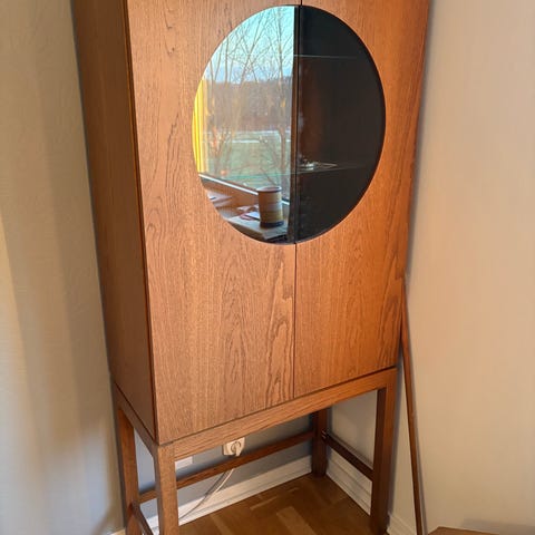 Snyggt danskt vitrinskåp med glasdörrar och belysning. Väldigt bra skick utan repor och dylikt. Det är teak vinylfaner och ett väldigt tungt skåp.