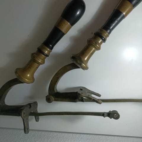 Äldre engelsk biltuta i mässing, märkt PEACOCK.