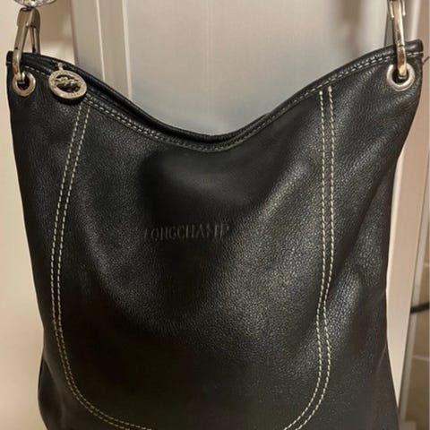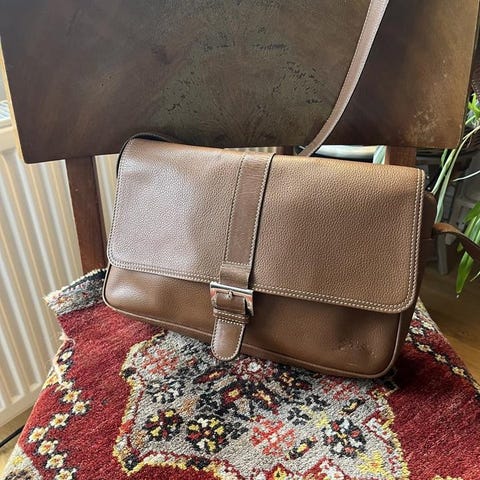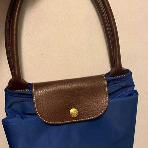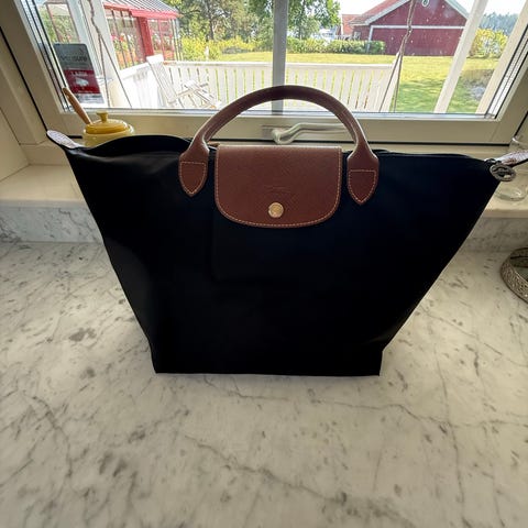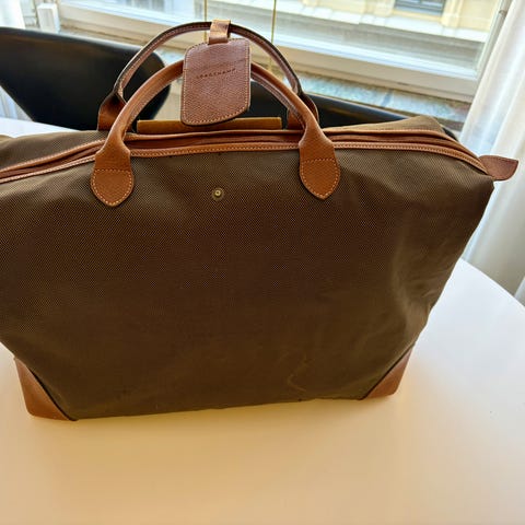 Longchamp tygväska för kvinna beige med bruna detaljer i storlek L