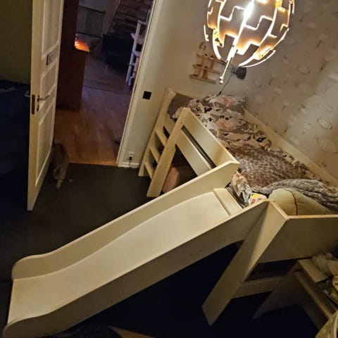 Den är byggd i furu och behandlad med vattenbaserad lack, fri från onödiga kemikalier eller skadliga ämnen.