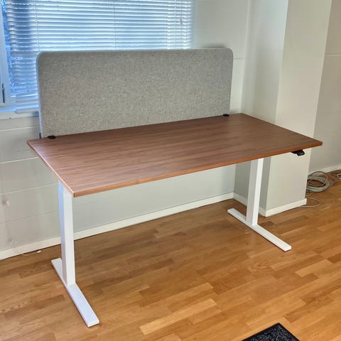 IKEA BEKANT skrivbord i svart färg. Bordet är höj- och sänkbart . Passar för kontors- eller hemmabruk och ger en stabil arbetsyta. Skrivbordsstolen och ergonomisk ståmatta ingår. OBS monitorn, tangentbord och mus ingår ej!