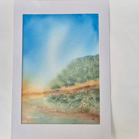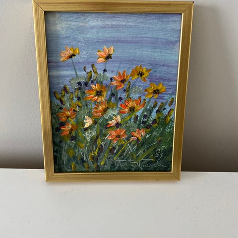 Handmålad landskapsmålning i akryl. Målningen är ca 40x60 cm stor (kan mäta för exakta mått vid efterfrågan). Ram ingår inte.