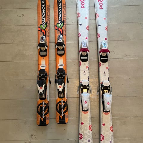 Säljer skidor som barnen vuxit ur. Är i använt skick men kommer fungera toppen många säsonger till.