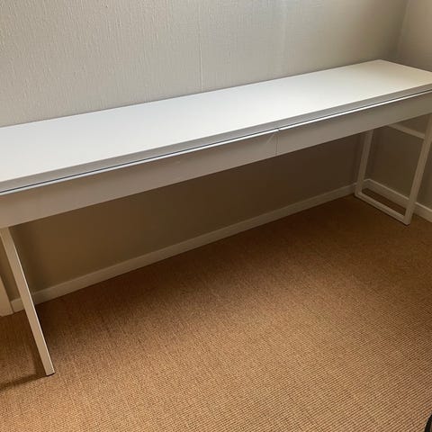 IKEA skrivbord i vitt med två lådor.