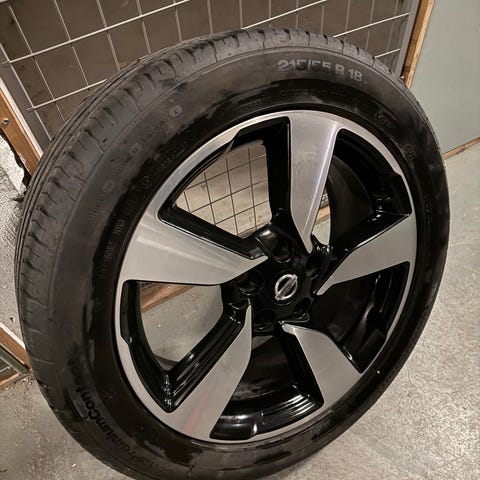 Nu säljer vi en komplett och välvårdad uppsättning 18 tum original Nissan Navara aluminiumfälgar utrustade med Continental sommardäck.