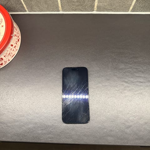 Apple iPhone 15 Pro mobiltelefon med 512 GB lagringsutrymme. Batterihälsan är 100% med maximal kapacitet.