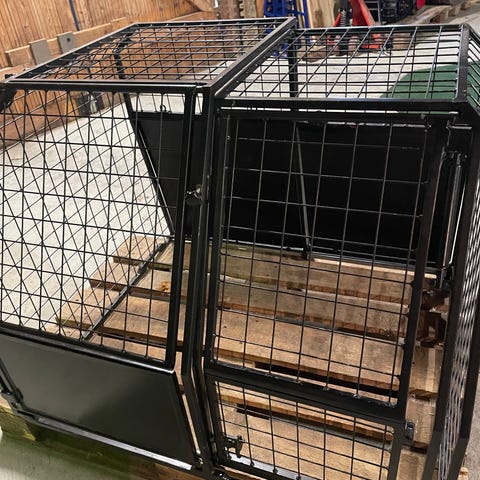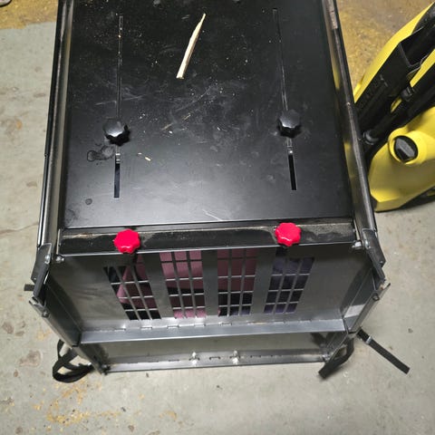 Låsbar med nyckel och det ingår matta i buren och skydd för bildens kofångare