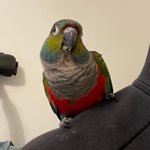Hej säljer min fågel pga en resa mycket tam fågel som cr 4 månader gammal hand matat sen han var 2 veckor gammal han jätte tam och älskar menniskor du får stor byr och en liten