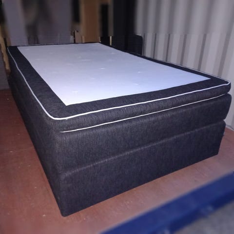 Kontinentalsäng, 120x200 med gavel. Tyg grå färg,