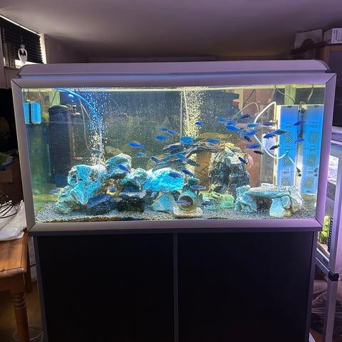 Håvar, hävert, streamerpump, rötter, stenar, singel i båda, fiskar enligt foto - Malawi samt några malar.