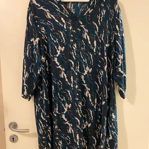 Lindex Holly Whyte vardagsklänning i storlek L för kvinnor. Klänningen är flerfärgad och tillverkad i bomull. Den är designad för vardagligt bruk och har ett mönster med flera färger.
