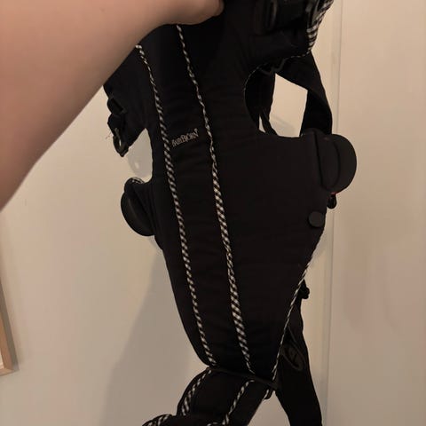Inköpt 2019, varit väl använd men fortfarande mycket fint skick. Man kan använda den på fyra olika sätt och barnen har alltid suttit jättebra i den. Lätt att ta på sig. Originalkartong finns kvar.