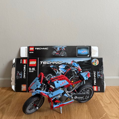 Sällsynt äldre LEGO Technic-set från **1991**, bygg en realistisk motocross-motorcykel med rörliga funktioner. Setet består av ca 251 delar med bland annat styrbar framgaffel, fjädring och en kedjedriven V-2-motor som ger modellen extra detaljrik mekanik.