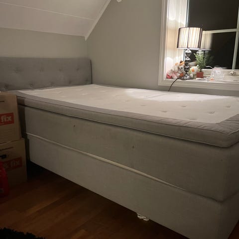 Säljer en sparsamt använd Mio-säng i 120 cm bredd, Sense Deluxe Medium med den lyxigare Dream Deluxe bäddmadrassen i matchande färg. Gott skick, har haft den några år men bara som gästsäng och därför inte så mycket använd.