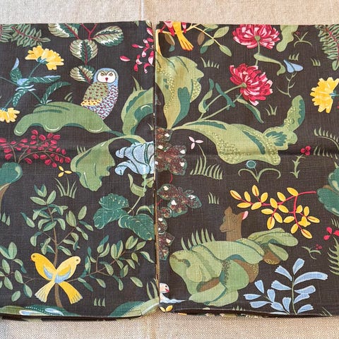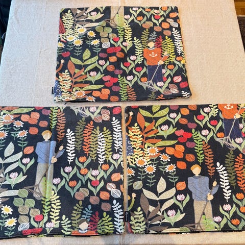Nu är det dags att vår styla soffan och sängen med nya kuddar. Jag säljer två vackert mönstrade kuddfodral i pigga färger av tyget Adam och Eva designat av Betty Svensson för Svanefors. Materialet är bomull.