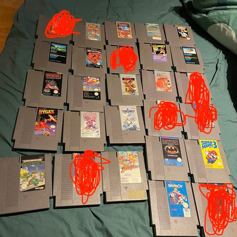 1 kasett med tre spel medföljer, Super Mario Bros, Tetris, och Nintendo World Cup, varav det sistnämnda stöder upp till 4 spelare.