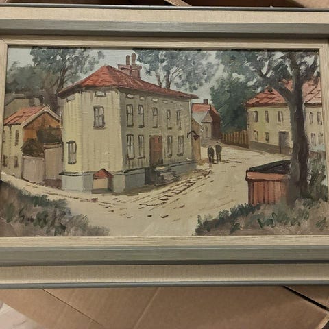 Tibor Koos 1961. Stor oljemålning på duk. Ca 115 × 95 cm.
