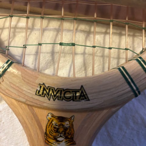 Säljer en klassisk Dunlop Maxply McEnroe tennisracket i trä, ett ikoniskt samlarobjekt från tennisens guldålder.