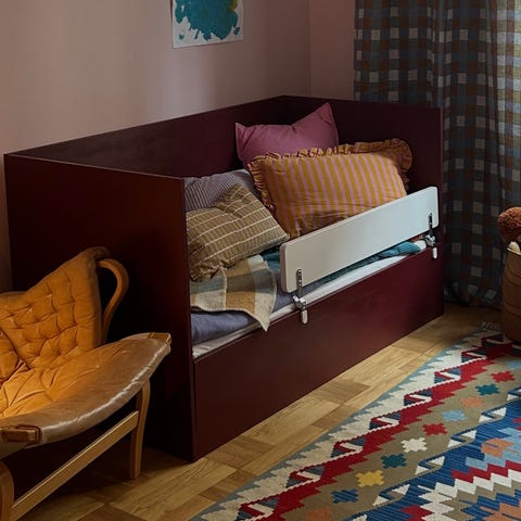 Säljer vidare min dotters fina säng 72 cm bredd 140 cm längden och som varit väldigt nöjd med och det inkluderar madras,tält över huvudet rosa färg samt förvaringsplats. Väldigt bra skick!