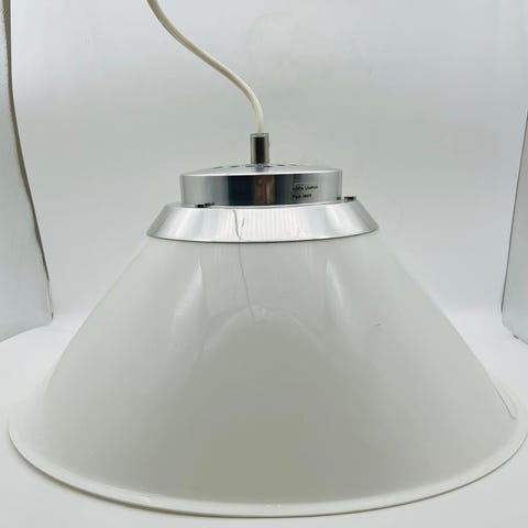 Stora lampor i lackad metall som passar bra över matbordet, men också på kontoret.