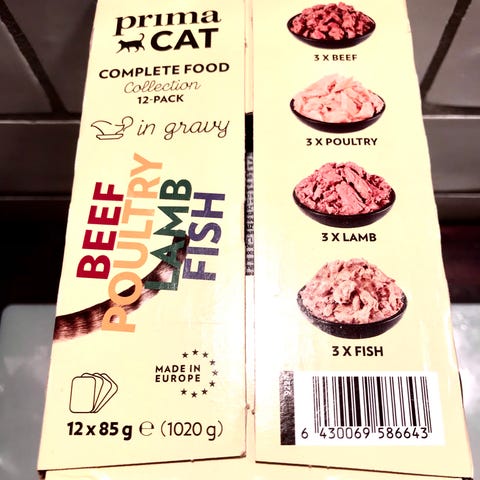 12 loaf , 10 beef, 5fish o 3 kyckling plus 0.5 kg torrfoder renal royal canin