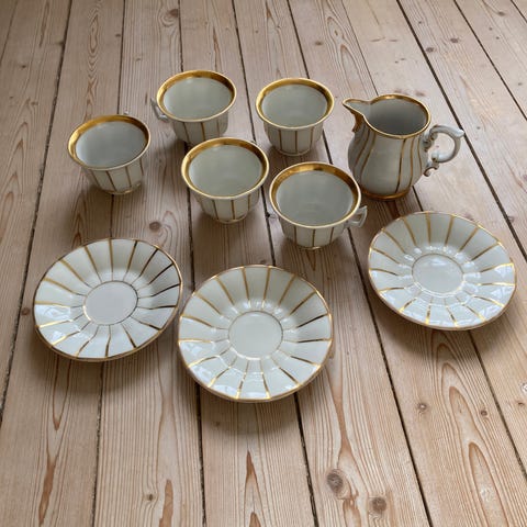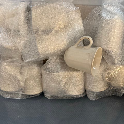 Fyra muggar med Ugglemotiv i olika färger. Hela och fria från stötta kanter. Sparsamt använda, är i mycket fint skick