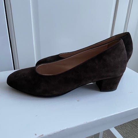 Jättefina helt oanvända festskor i mörk champagefärg med svart spets säljes till högstbjudande