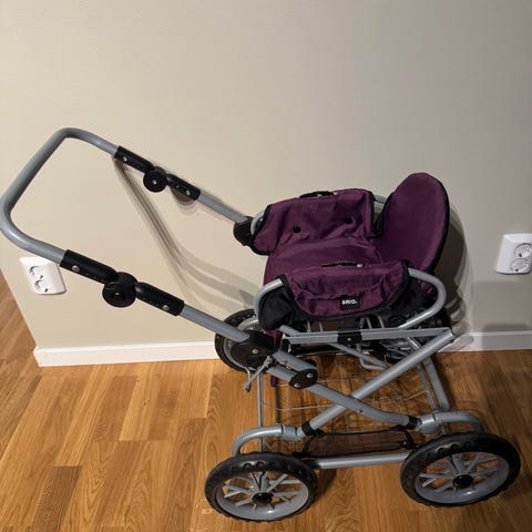 Vi säljer vår BRIO-dockvagn nu när våra barn har vuxit ur den. Dockvagnen har justerbart handtag och är hopfällbar.