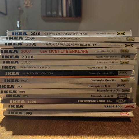 IKEA kataloger från åren 2009, 2010, 2011 och 2012. Innehåller information om produkter och inredning från respektive år.