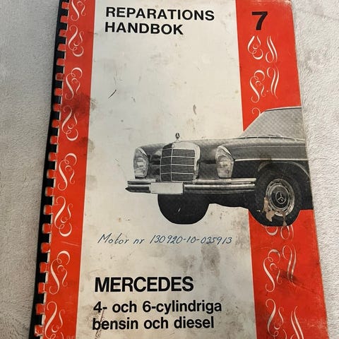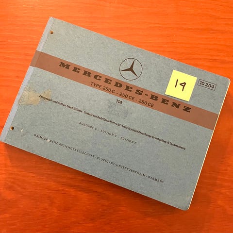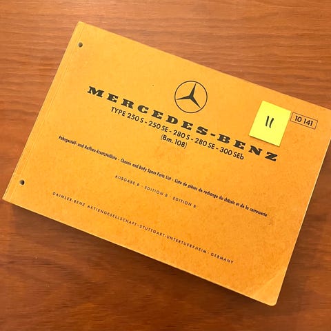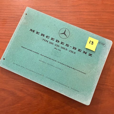 Mercedes-Benz Typ 230-250 reservdelskatalog papper. Används för att ge information om typ 230-250 modeller från Mercedes-Benz.