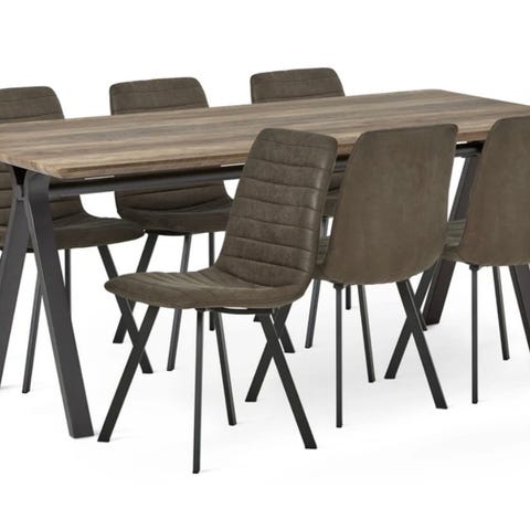 Säljer matgrupp med bord och 4 stolar. Två stolar är nästan oanvända, de andra två har lite mer användning. Bordet har en gulddetalj längst ner.