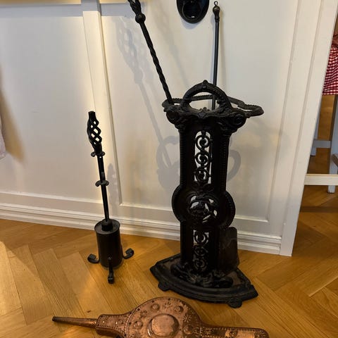 Askspade och « poker », beställt från England. Mässing. Okänt ålder, okänt ursprung. Kan skickas.