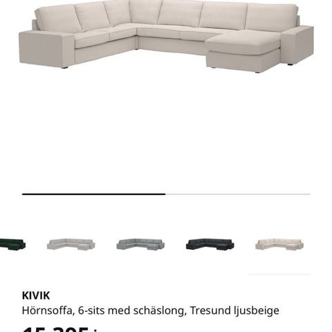 Kivik hörnsoffa från IKEA färgen Tallmyra mörkgrön. Köptes 3 år sedan, något solblekt på ena kanten. Även två vimle nackkuddar.