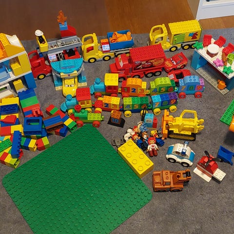 LEGO DUPLO byggklossar i olika färger och former. Setet innehåller flera klossar som kan användas för kreativ lek och byggande. Passar för yngre barn och är tillverkade i plast.