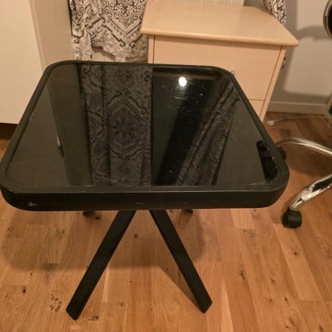 Mamma vill sälja sin telefonbänk. Lite slitage i hörn. Tejprester nedtill.