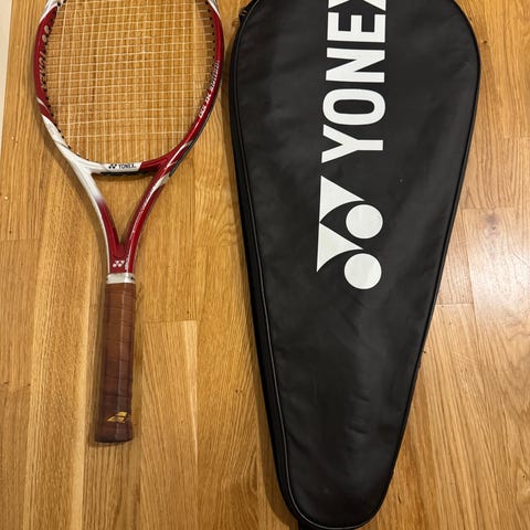 Yonex VCore 98 tennisracket köpt i sommar 2025, använd i mycket bra skick. Det finns normala spår av användning men inga sprickor eller skador.