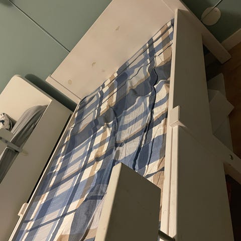 Enda anmärkning, skulle vara att sängramen på vänster sida är sliten i färgen, se bilden. Går att måla över.