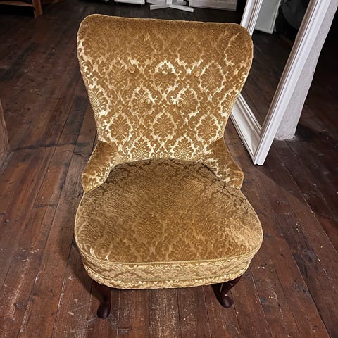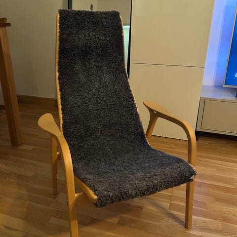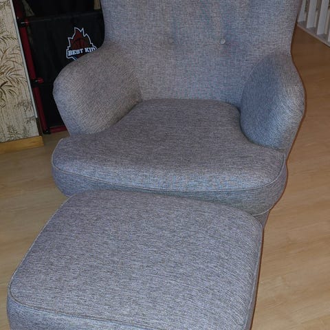 Fåtöljen är i bra och fräscht skick, nytvättad klädsel.