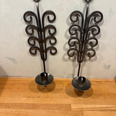 SÄNKT PRIS: Smidda ljusstakar med vinhållare – vägg eller bord (2 st)