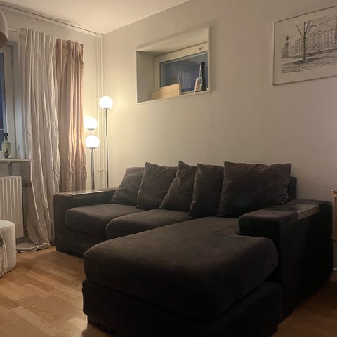 Anledningen att vi säljer den är för vi behöver en större soffa och vi hoppas få den såld senast onsdag✨️ Vi bor på Mariehem, en trappa upp men vid smidig affär kan vi hjälpa att bära ner soffan om det behövs!