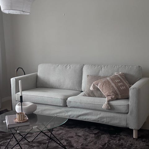 Säljer här en 3-sits soffa som har några år på nacken men som fortfarande har mycket att ge! Den är ren och fräsch och har bra dynor, upplever dem inte som nedsuttna och den är väldigt skön att både sitta i och för gäster att sova på! (Det har varit den mest återkommande kommentaren våra gäster haft😆) Dynorna är avtagbara och kan tvättas. En tax har funnits i hemmet, tyvärr han gick bort för 2 år sedan och jag har damsugit soffan flera gånger sen dess men reserverar mig för att nått pälsstrå finns kvar😅