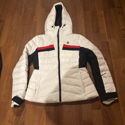 Jackan är en tunn skidjacka som funkar bra i alla väder med goda mellanlager. Den har många fickor, lifkortsficka, snölås och mer. Jackan sitter bra på mig som är 168cm lång.