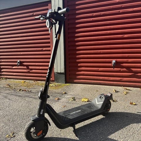 Ninebot KickScooter E2 el-scooter i svart färg. Utrustad med elektrisk framhjulsmotor och fällbar design för enkel transport och förvaring. Lämplig för personligt bruk i stadsmiljö. Priset är ej hugget i sten